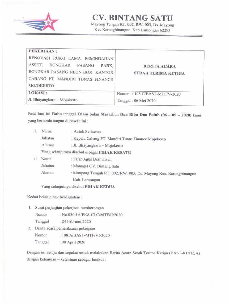 Direktur sales dan distribusi mandiri tunas finance harjanto tjitohardjojo menjelaskan mulai 1 juli 2020, pola keringanan kredit bagi nasabah akan berubah. Mandiri utama finance sebagai salah satu perusahaan pembiayaan terkemuka di indonesia menawarkan kemudahan untuk mendapatkan pembiayaan mulai dari pembiayaan mobil baru & bekas, motor baru & bekas, serta pembiayaan multiguna. Menyusul penyitaan satu unit kendaraan roda empat merek daihatsu ayla l1329 d, pada sabtu, 31/10/2020. Pt mandiri tunas finance karawang. Rizal eka hermawan (28) , warga dusun semaden, desa kepuhdoko, tembelang, jombang mengancam akan menempuh jalur hukum dan melaporkan pt. Mandiri tunas finance is a company that provides credit for the purchase of new and used cars in an easy and innovative way for individuals and companies. 8, desa jati kulon, kec. Mandiri tunas finance mojokerto, jawa timur. (0401) 3135093 / (0401) 3194438, (0401) 3135094. Pt mandiri tunas finance cabang mojokerto. 95 likes · 47 talking about this. Mandiri tunas finance, perusahaan multifinance terpercaya di indonesia yang memenuhi kebutuhan kredit mobil dan kendaraan bermotor anda. Anda hanya menyiapkan berkas foto copy saja, kami yang memproses sampai jadi po dan surat.